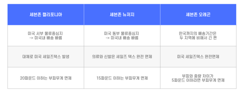세븐존은 캘리포니아, 뉴저지, 오레곤 이렇게 3대 배대지가 있어서 많이 찾고있습니다.
